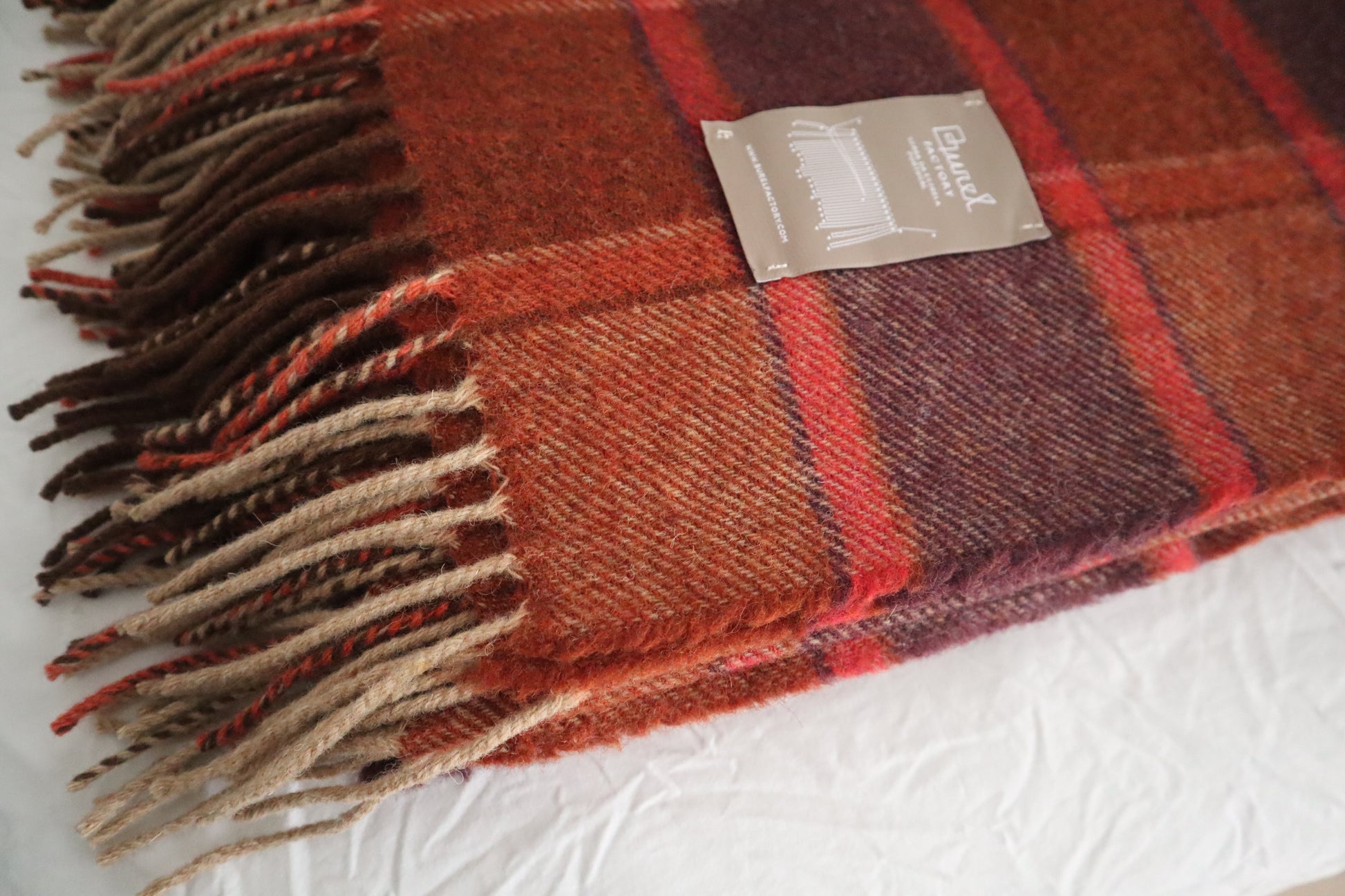 A coleção “Linea” da Burel Factory reúne três mantas de lã pura com padrões xadrez vibrantes e matizados: azul-rosado, verde e vermelho-acastanhado. Cada manta apresenta uma textura densa e macia, com franjas harmonizadas às cores do tecido, refletindo o artesanato tradicional da Serra da Estrela. A coleção combina calor natural, durabilidade e a intemporalidade do design português.